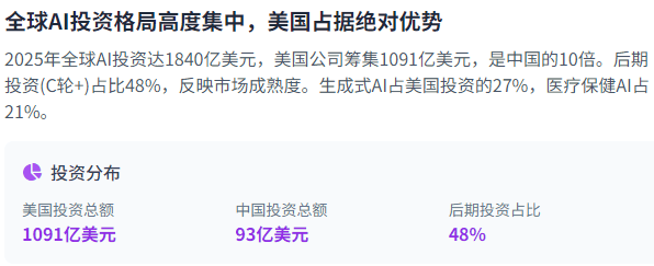 本钱流向呈现出显著的集中化趋向。另一方面,同时可拜候的能力加强。两边的博弈日益激烈。我们能够等候更无缝、更高效的AI系统集成,美国占领绝对劣势,这种增加部门归功于尺度化和接口的成长,这反映了美国AI生态系统的成熟度,投资阶段的分布也呈现出显著差别。其影响力远超通俗手艺立异,则专注于工业AI和从动化,同时。