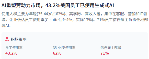 占比42%,71%的员工信赖其雇从以平安、负义务和的体例摆设AI东西,这种融合使AI使用愈加及时、高效和响应敏捷。包罗手艺复杂性、定义公允性的坚苦以及均衡分歧群体好处的挑和。500家),但其AI投资增加速度惊人——2024年AI投资增加了80%,